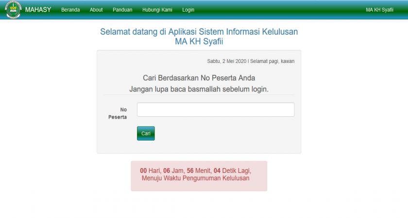 Pembukaan Pengumuman Kelulusan online dibuka pada hari Sabtu, tanggal 2 Mei 2020 dengan link pengumuman sudah tertera di menu website ini.