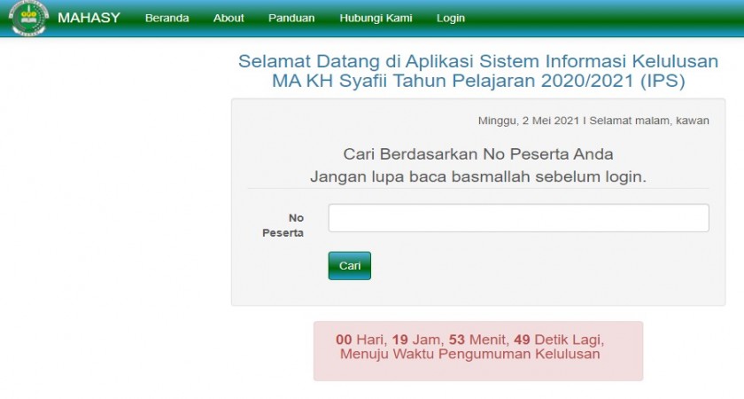 Pengumuman Daring (online) Kelulusan MA KH. Syafi'i TP. 2020/2021