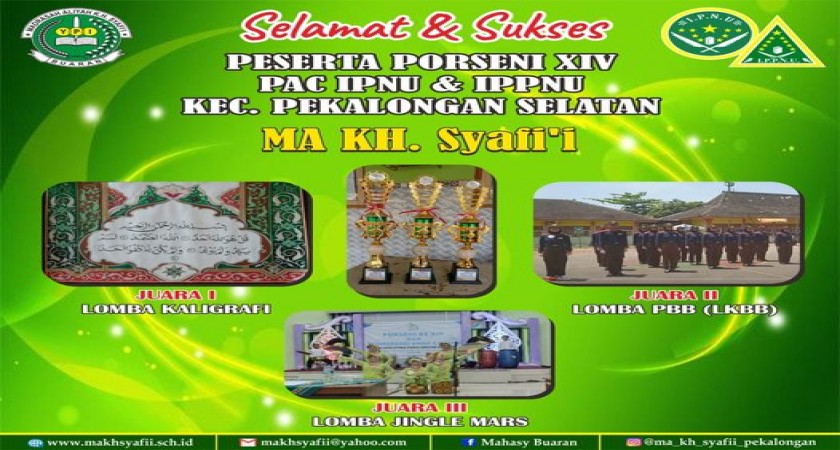 MA KH. Syafi'i meraih juara di PORSENI XIV PAC. IPNU-IPPNU Pekalongan Selatan