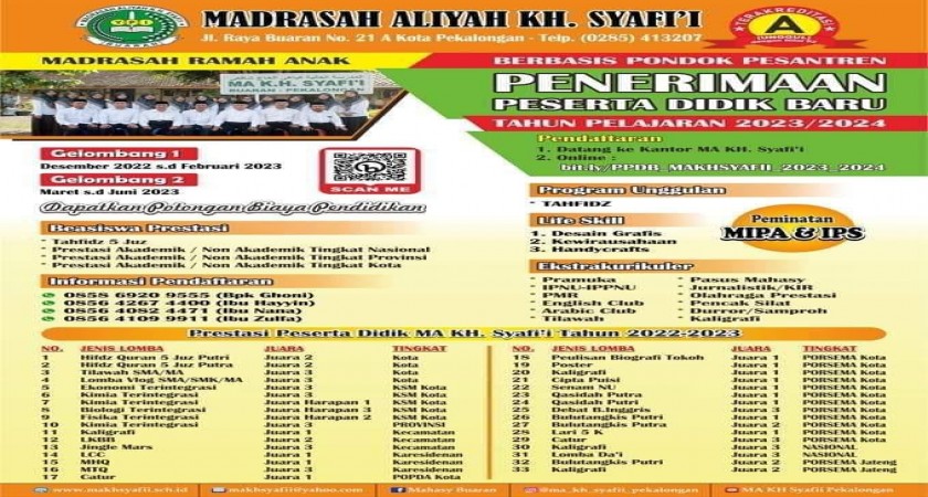 PPDB MA KH. Syafi'i Kota Pekalongan 2023/2024